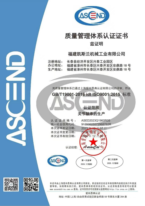 关节轴承虽小,却关乎重大装备的可靠性与寿命。成立于2011年的福建凯斯兰机械工业有限公司,专注关节轴承领域十余年,在自润滑、耐高温重载等关键技术上实现突破,并获得国、央企认可。近日,佰联轴承网走进凯斯兰,探寻这家技术型工厂的硬核实力与未来布局。